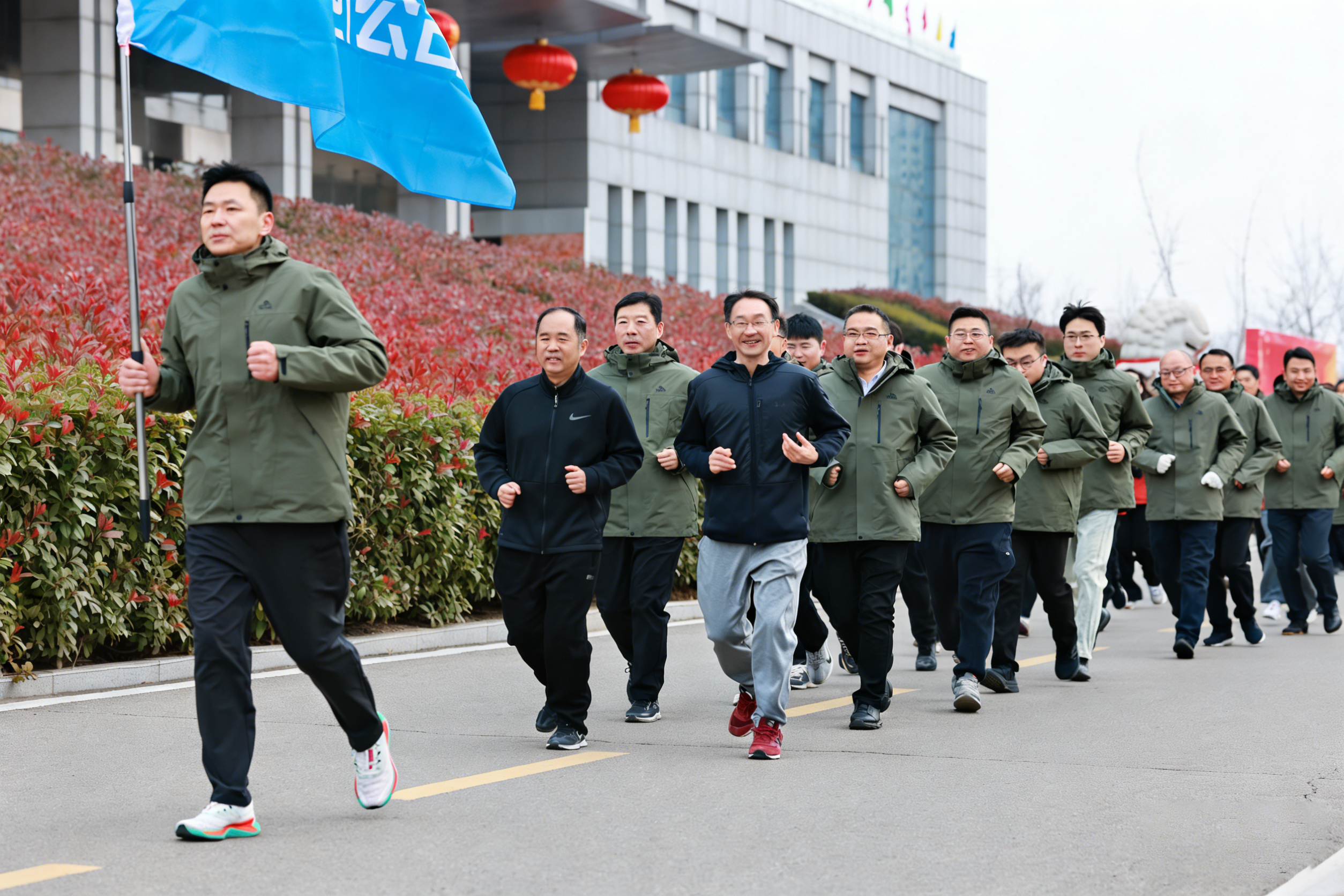 在李跃文、翁明月的带领下,来自公司机关各部室中心、设备租赁公司、救护大队、新能源公司、科瑞分公司、煤炭贸易公司的干部职工代表,组成14支长跑队伍,开启了新年第一跑。