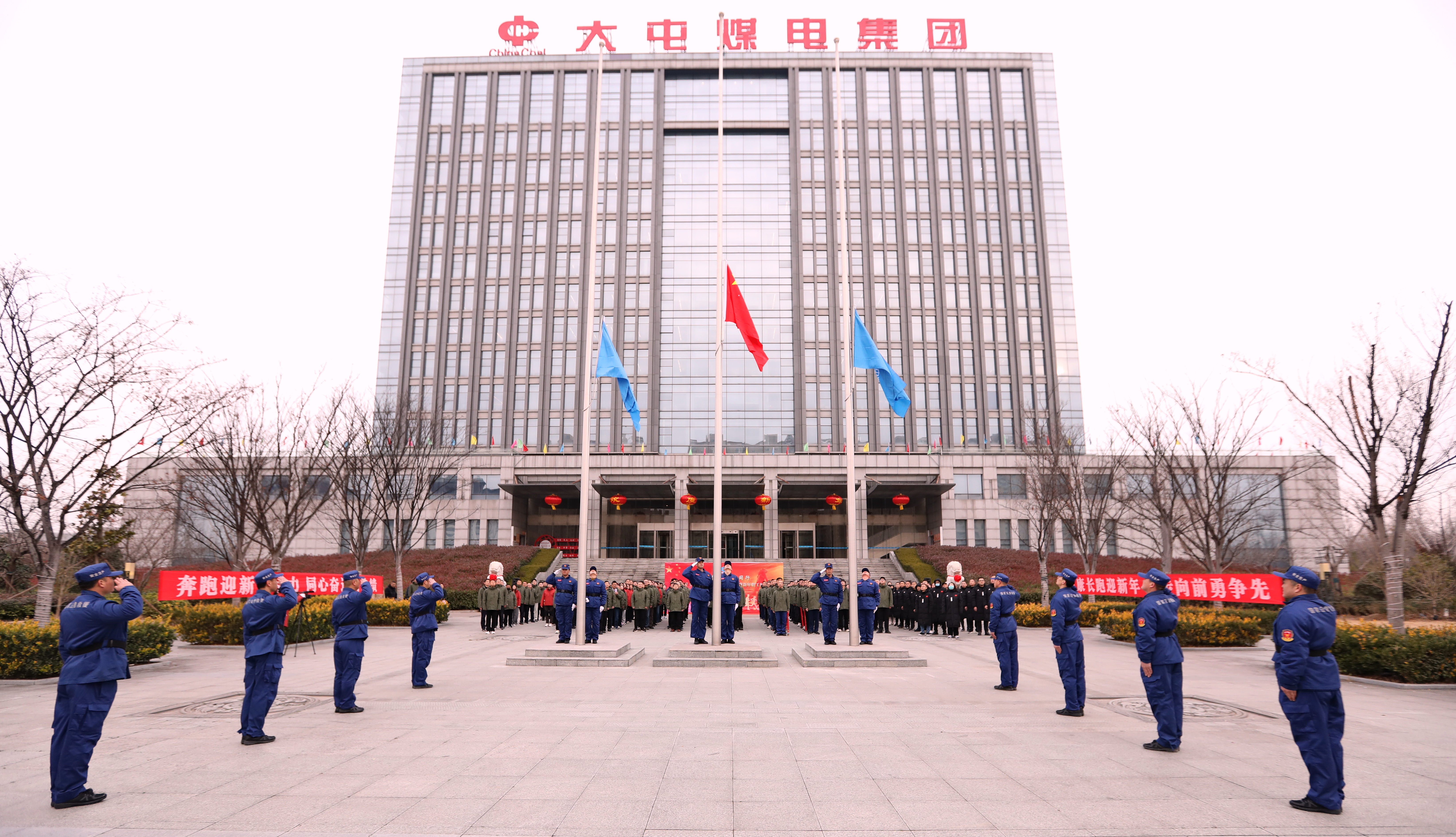 其他直属单位按照公司统一安排部署,结合实际情况,在本单位区域内或是在救护大队、中煤职院,同步组织开展了迎新年长跑活动。活动开始前,公司及各所属单位还举行了庄严的升旗仪式。